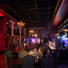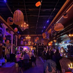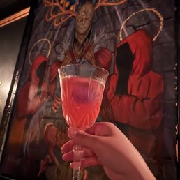 When walking in here FINALLY, I felt a bit like I had that GOT nun with the bell saying, "SHAME" behind me. I have been wanting to drop in here since they opened. Growing up an OG spooky kid and demanding we have more spaces like this...well, I FINALLY came. After attending a performance by Portland Opera of a selection of Puccini, my friend and I were hungry. I had previously sent her here for a show they were hosting with Night Flight Aerial and she loved the food. Since we were already downtown we decided why not have a bit more drama. It was slow for a Saturday too which was perfect for us so we could just take in that gorgeous space without a lot of people. Their food is delicious! To add more drama, my friend got a mocktail on fire. I definitely want to go back for a cocktail evening but genuinely just wanted some food. I missed that it was called 'The Hellfire Roasted Alfredo' and normally never order something spicy, but this was delicious! It was garlic, red bell peppers with a side of garlic bread that was pretty perfect and some grilled chicken. My friend is a vegan and loves their chicken sandwich. They have a lot of options for everyone. They have a lot of events and theme nights. I just love the versatility where you can go for a thing, a meal or a drink series. They really go hard on the theme and it is a glorious looking space set very well for entertaining your party.